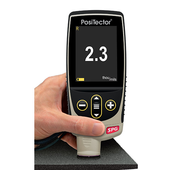 The PosiTector SPG is a digital surface profile gauge that measures and records peak to valley surface profile heights.