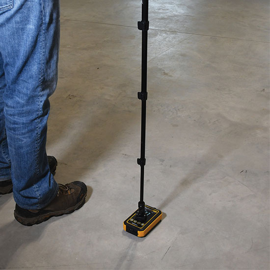 - Spring loaded sensor pins provide enhanced contact on uneven concrete