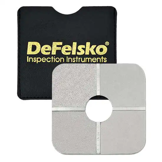 Surface Profile Comparators provide a quick means for visually and tactilely assessing surface profile depth generated by abrasive blast cleaning with or without an illuminated magnifier. Disks include 4 or 5 reference grade profiles, depending on model.