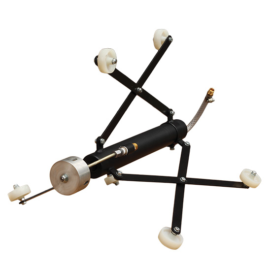Storm Machinery’s Conventional RotorCoater is a pneumatically operated, internal pipe coater. The RotorCoater is fitted with a pneumatic motor which spins a rotary cup. A conventional pipe coater can connect to any conventional spray pump for fluid delivery. Paint is fed to the rotary cup via a transfer pump and the unit is manually pulled through the pipe.